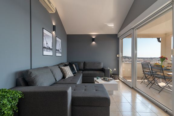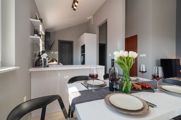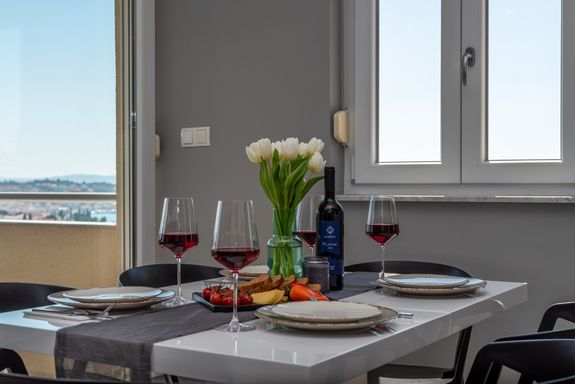 Fühlen Sie sich wie zu Hause und genießen Sie die Aussicht. Der Ess- und Wohnbereich lädt zum Wohlfühlen ein.